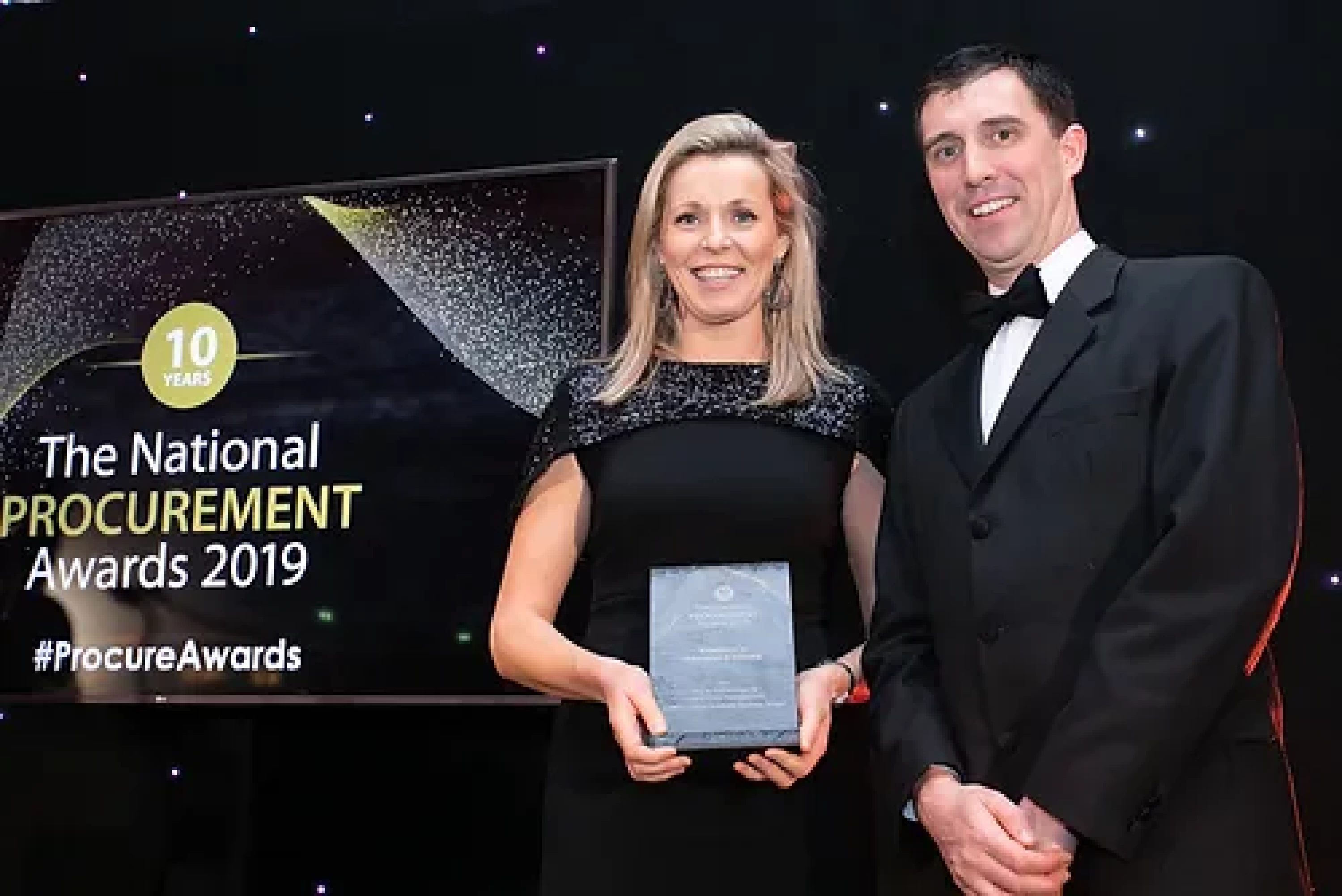 Eavan O'Halloran, Awards Judge presents the Best Public Sector, Semi-State or Government Procurement Project of the Year award to the Fingal County Council Procurement team.